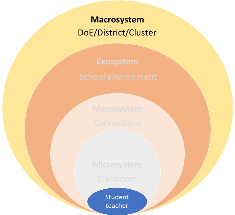 The South African public school system is used as the main context here. We may assume that student teachers know the stucture and connecions of the education environment, but this is not always the case.